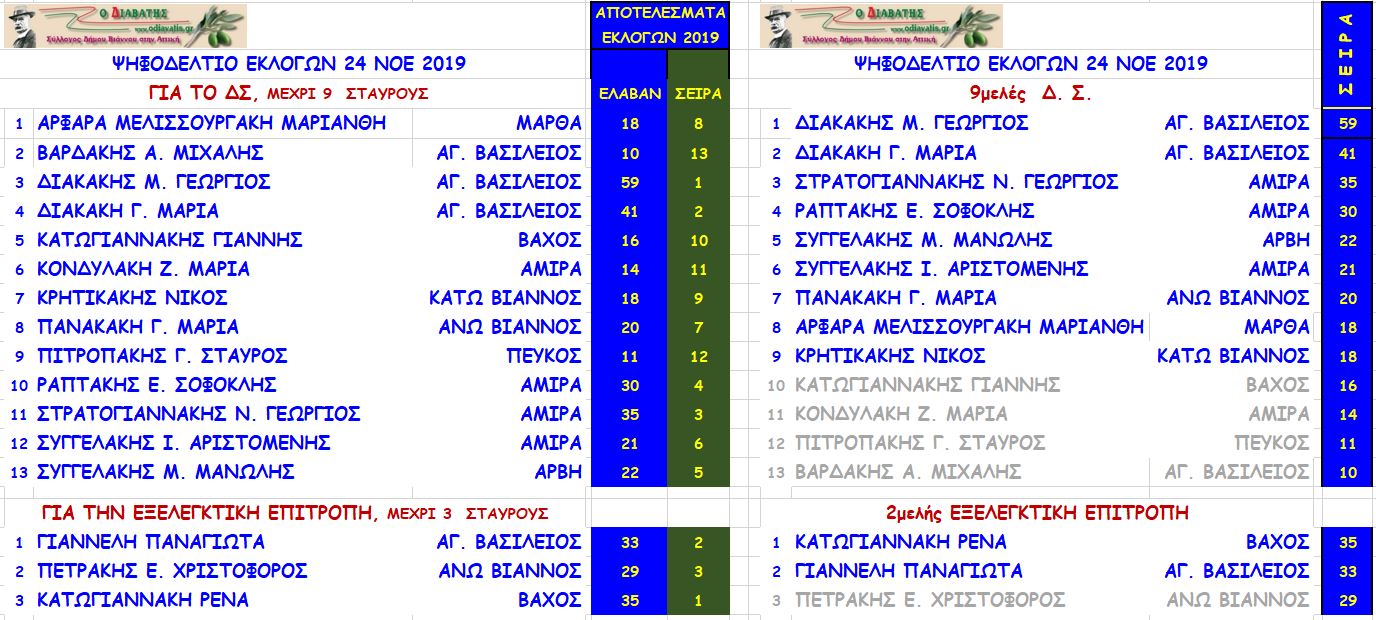 Αγαπητοί μας, τις υποθέσεις του ΔΙΑΒΑΤΗ τις διαχειρίζεται τώρα η 9μελής των νεοεκλεγέντων μελών μέχρι την εκλογή του νέου Δ.Σ.