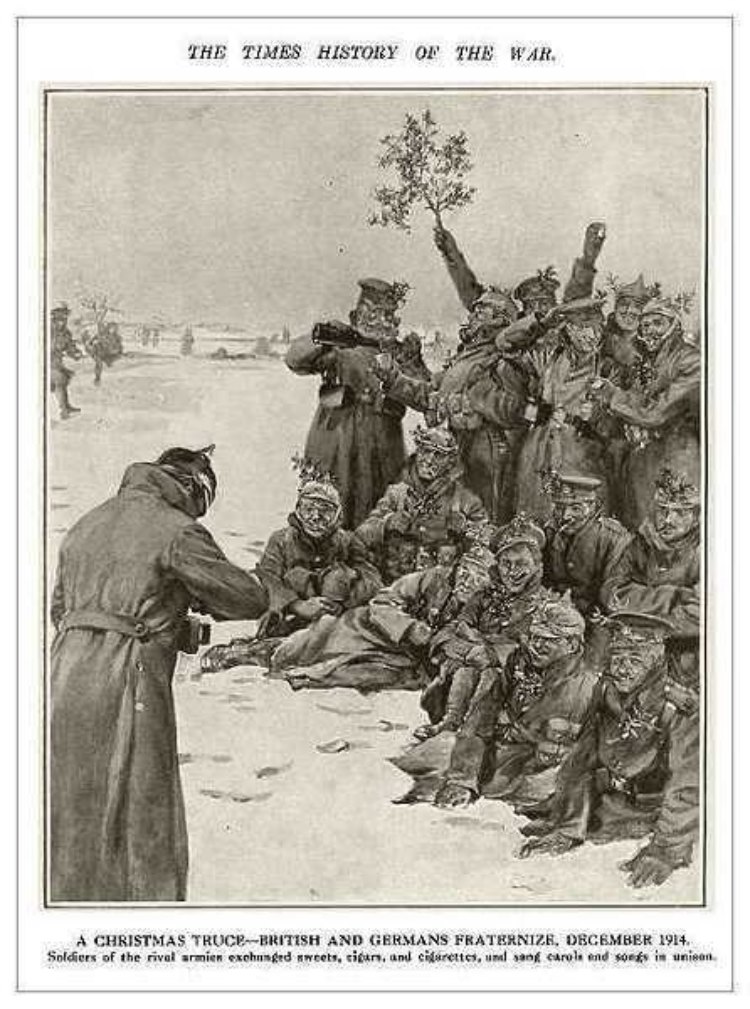 Ήταν μια μικρή ειρήνη σε ένα Μεγάλο Πόλεμο… που συνεχίστηκε και την ημέρα των Χριστουγέννων ως τις 3 το μεσημέρι στο διπλανό εγκαταλελειμμένο χωριό φτιάχνοντας ένα πρόχειρο τραπέζι από τάβλες και παλιοσανίδες που βρήκαν , οι στρατιώτες χωρίς να καταλαβαίνουν τη γλώσσα του ενός με τον άλλο, έφαγαν, τραγούδησαν, μοιράστηκαν και έζησαν τα πιο ανθρωπινά Χριστούγεννα που μπορεί κανείς να φανταστεί !