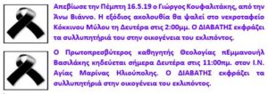 Η εξόδιος ακολουθία θα ψαλεί στο Δημοτικό Κοιμητήριο Κηφισιάς, Καρπάθου 41 και Χαριλάου Τρικούπη, αύριο Τρίτη στις 3:00μμ.
